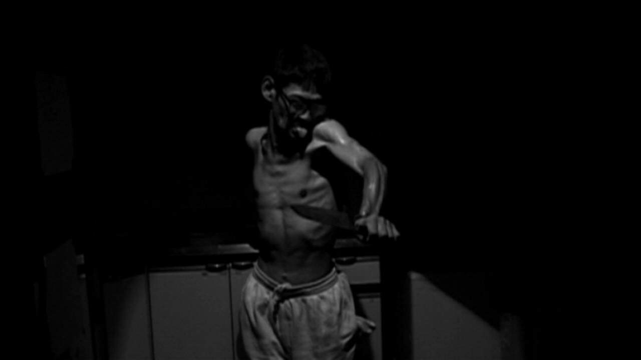Ketika Sumida, seorang pria dengan cerebral palsy, memulai pembunuhan yang kita saksikan dia berjuang untuk meracuni sahabatnya menggunakan mobilitasnya yang terbatas. Dimainkan oleh Masayuki Sumida yang berbagi kondisi yang sama dengan kinerja menyuntikkan realisme aneh ke dalam adegan. Tekadnya yang putus asa dikombinasikan dengan visual hitam-putih minimal desain dan pengeditan mentah menjadikan ini momen yang sangat melelahkan.